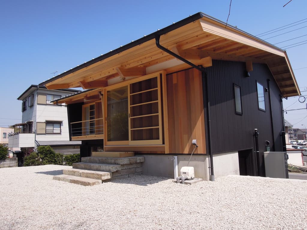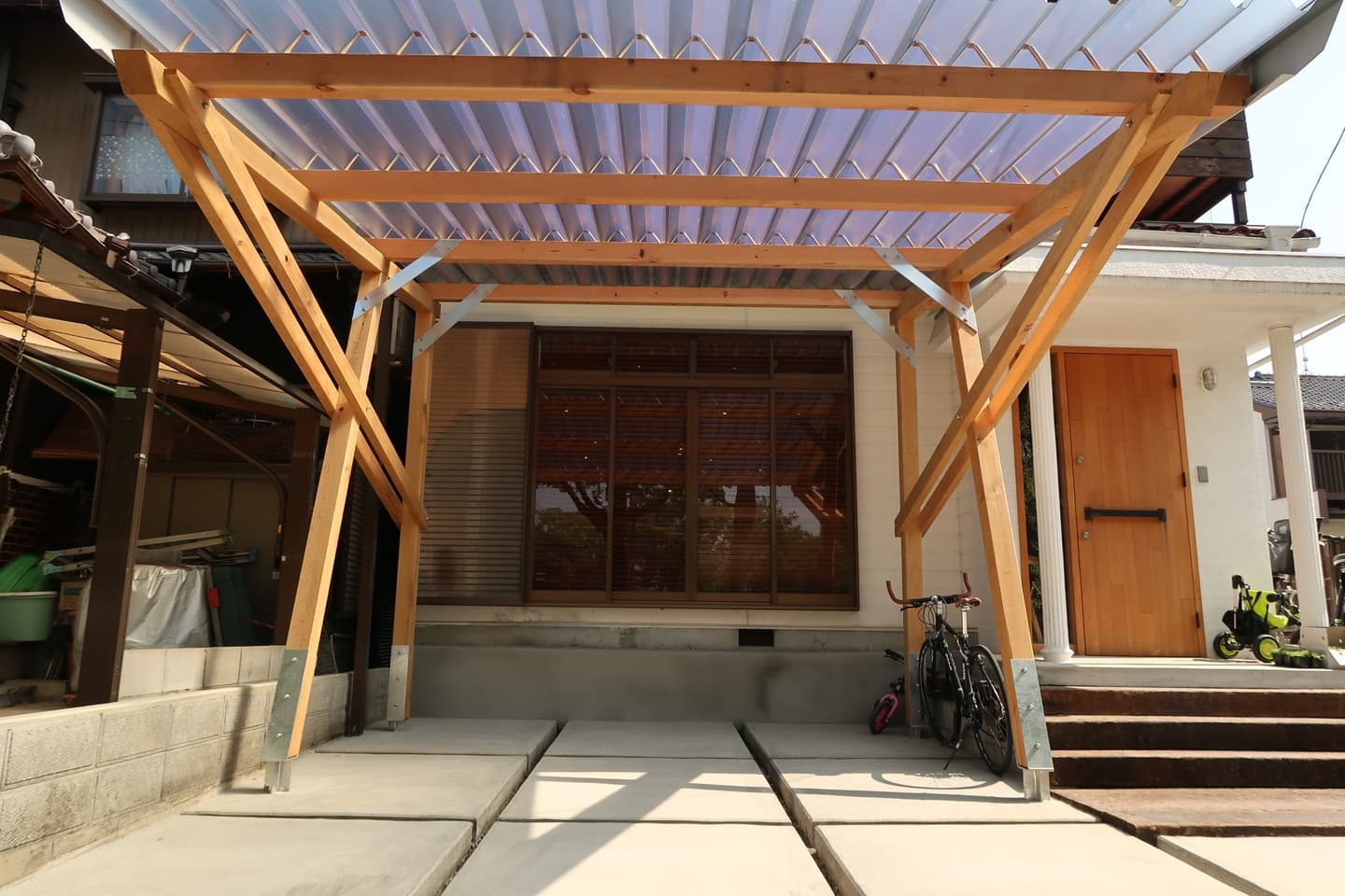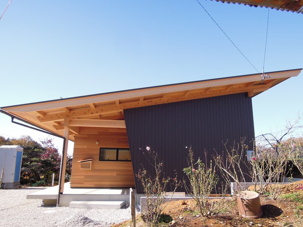 壁のように急な屋根の下には自転車なども収納することもでき、配置する向きによっては視線を遮ることもできます。
