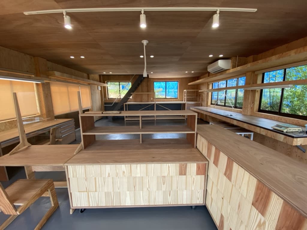 長らく梨・柿の果樹園の出荷場兼店舗として使用していた鉄骨造の建物。鉄骨むき出しで無断熱だった室内を断熱改修しつつ内装材を施工しました。エアコンも設置し、快適な空位環境や、什器によるレイアウトでお客さまエリアと作業エリアを分けることができ安心な出荷場兼店舗として蘇りました。