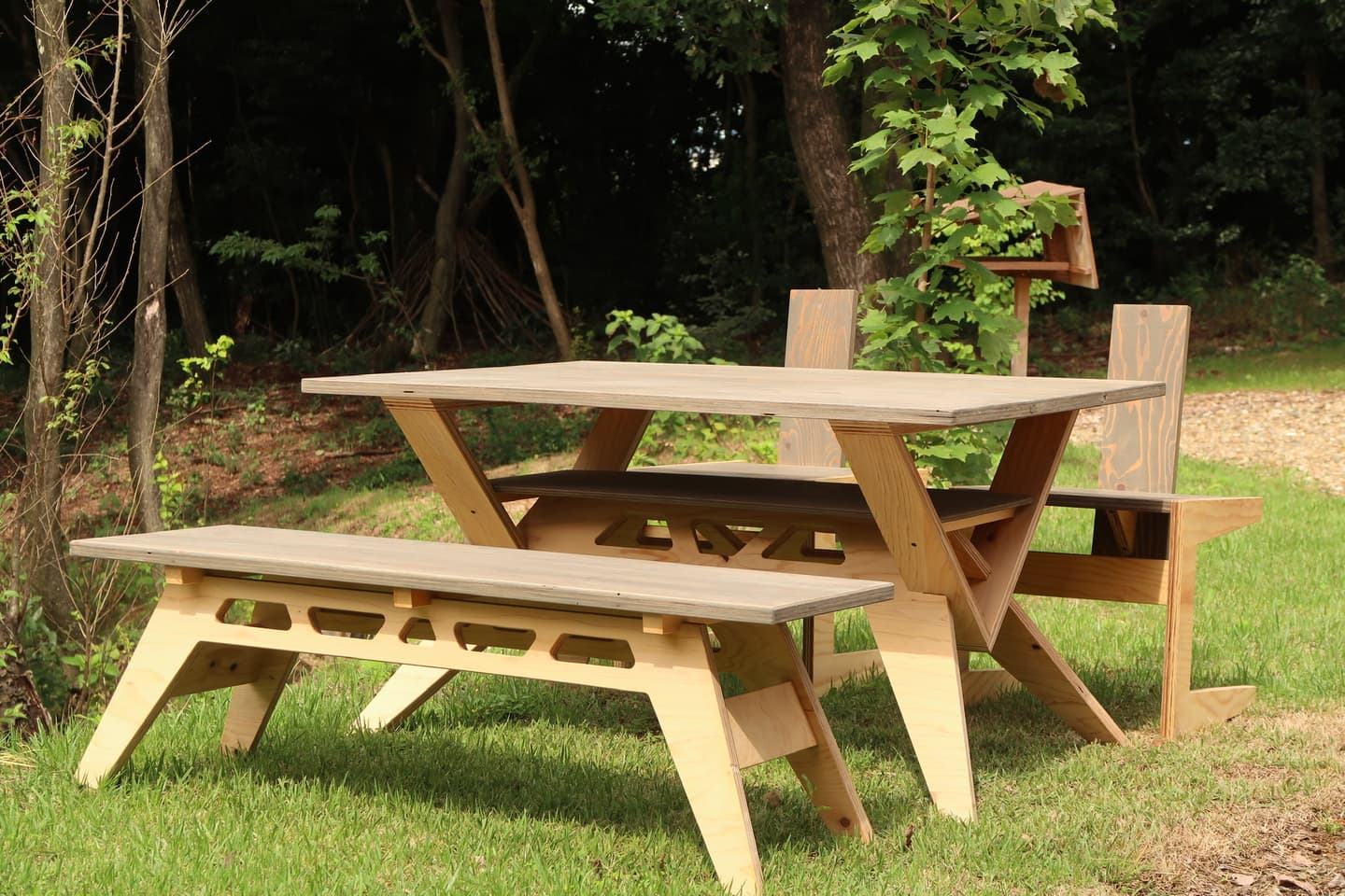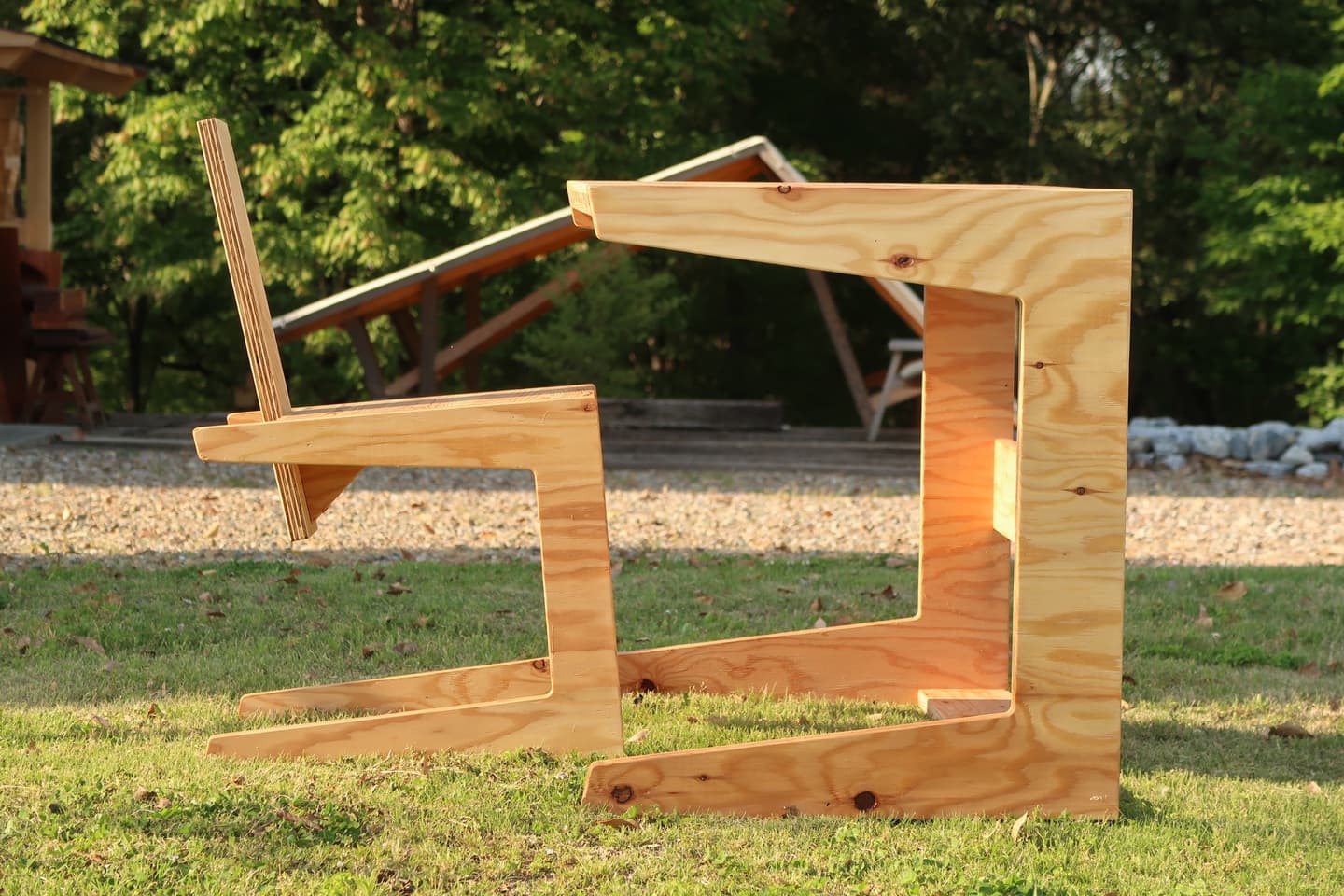 厚手の針葉樹合板で部材を構成。組立式になっています。